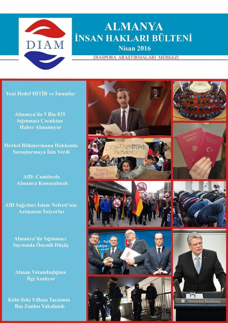 Sakarya Üniversitesi Diaspora Araştırmaları Merkezi’nce hazırlanan Almanya 2016 Nisan Bülteni yayınlandı. Yayınlanan bültende 2016 yılının Nisan ayında Almanya’da yaşanan olaylara ilişkin haber içerikleri bulunmaktadır. Gün gün takibi yapılan Türkçe, Almanca ve İngilizce kaynaklardan derlenen Almanya 2016 Hak ve Özgürlükler Nisan Bülteni, Almanya’ya ilişkin yaşanan gelişmelere DİAM araştırmaları bağlamında odaklanmaktadır.