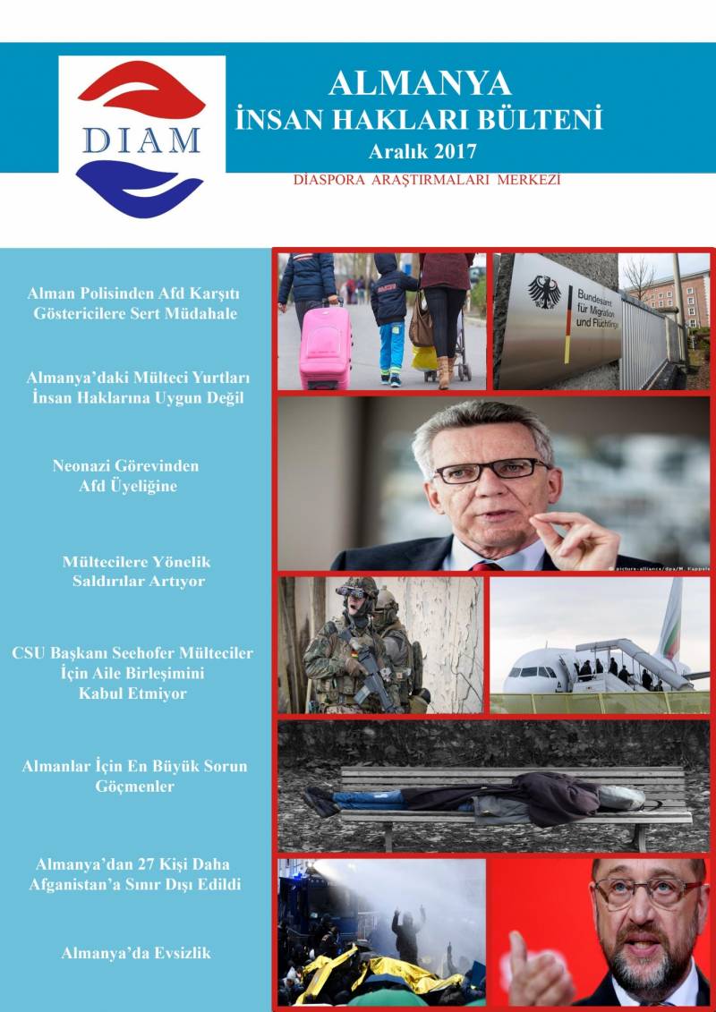 Sakarya Üniversitesi Diaspora Araştırmaları Merkezi’nce hazırlanan Almanya 2017 Aralık Ayı Bülteni yayınlandı. Yayınlanan Bültende Aralık 2017'de Almanya’da yaşanan olaylara ilişkin haberler bulunmaktadır. Gün gün takibi yapılan Türkçe, Almanca ve İngilizce kaynaklardan derlenen haberler DİAM araştırmaları bağlamında bülten haline getirilmektedir.