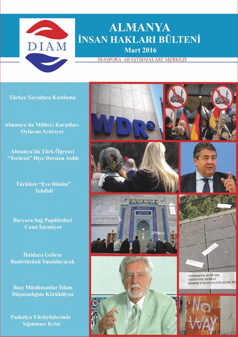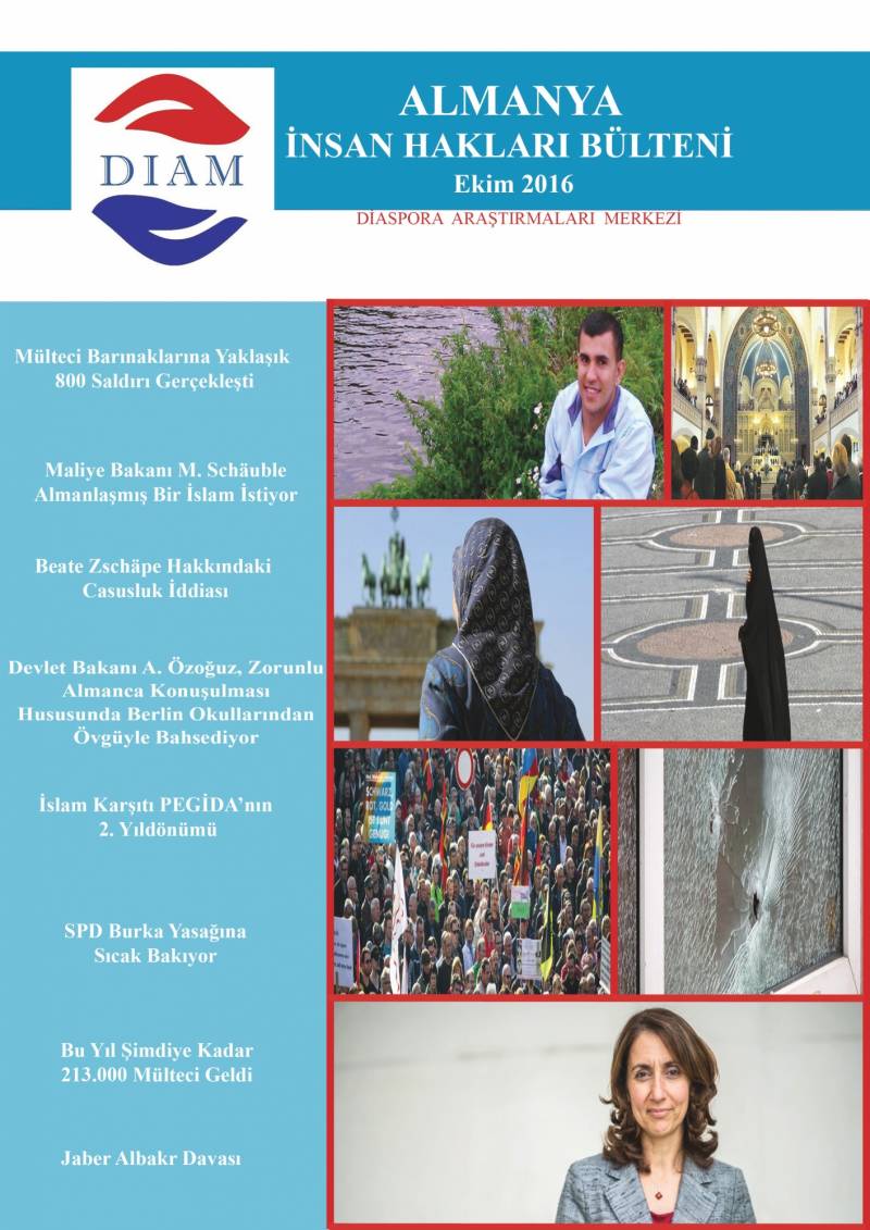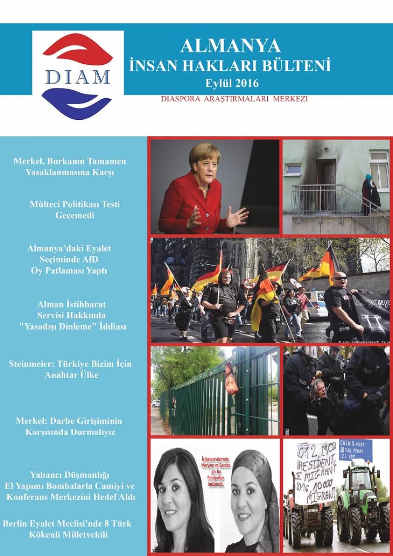 Sakarya Üniversitesi Diaspora Araştırmaları Merkezi’nce hazırlanan Almanya 2016 Hak ve Özgürlükler Bülteni yayınlandı. Yayınlanan bu bültenlerde 2016 yılının her ayında Almanya’da yaşanan olaylara ilişkin haber içerikleri bulunmaktadır. Gün gün takibi yapılan Türkçe, Almanca ve İngilizce kaynaklardan derlenen Almanya 2016 Hak ve Özgürlükler Bülteni, Almanya’ya ilişkin yaşanan gelişmelere DİAM araştırmaları bağlamında odaklanmaktadır.