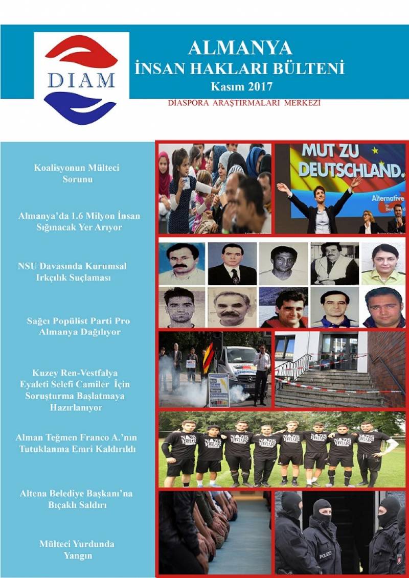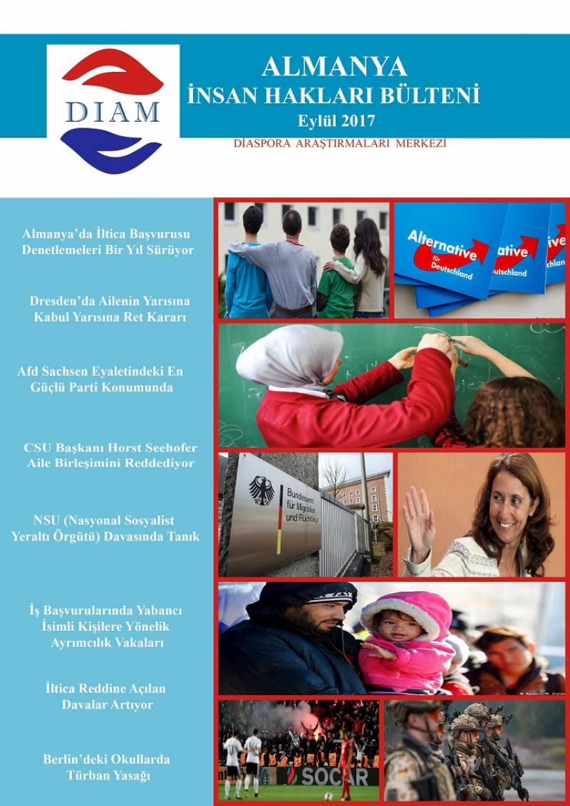 Sakarya Üniversitesi Diaspora Araştırmaları Merkezi’nce hazırlanan Almanya 2017 Hak ve Özgürlükler Bülteni yayınlandı. Yayınlanan bu bültenlerde 2017 yılının her ayında Almanya’da yaşanan olaylara ilişkin haber içerikleri bulunmaktadır. Gün gün takibi yapılan Türkçe, Almanca ve İngilizce kaynaklardan derlenen Almanya 2017 Hak ve Özgürlükler Bülteni, Almanya’ya ilişkin yaşanan gelişmelere DİAM araştırmaları bağlamında odaklanmaktadır.